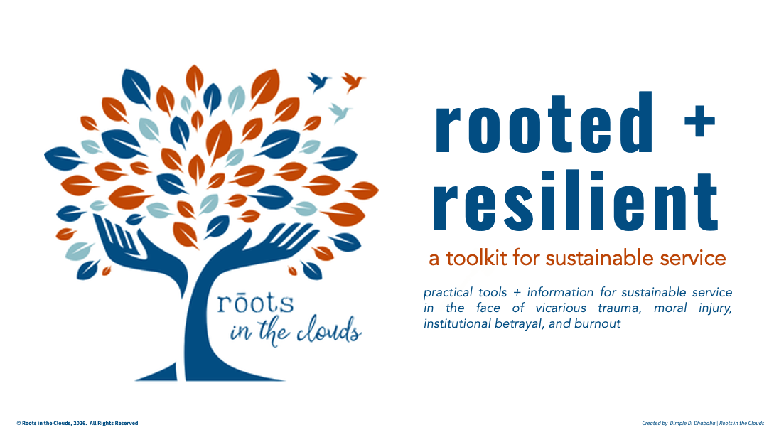 The Rooted + Resilient toolkit is for those working in service of others who are navigating this season with courage and care. It offers practical tools to help you stay grounded and connected in the face of ongoing uncertainty by: